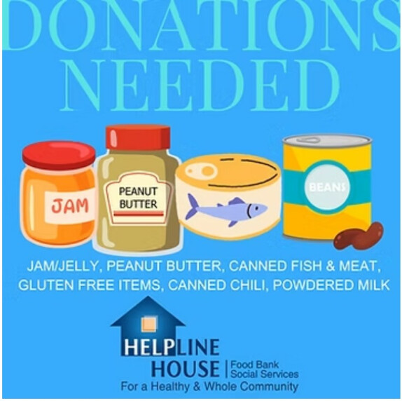Helpline House Food Donations- A volunteer to transport any donated items to Helpline House is needed.