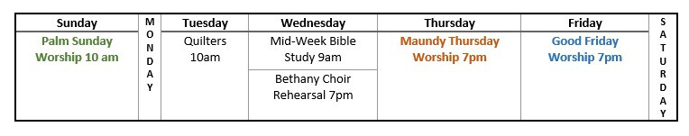 Holy Week Worship Dates & Times